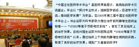很多人认为出现良性前列腺增生症的症状是一种生理老化的现象,而不是疾病。据调查,只有约1/3的病人会去求诊,而其中通过正规渠道得到治疗的病人更是屈指可数。许多中老年男性往往到了疾病晚期,甚至出现急性尿潴留时才去医院求诊,错过了合理治疗的良机,不得不通过手术进行治疗。 像前面王老板这种情况也比较特殊,当时还没有这么优良的治疗技术,传统治疗他有一定的担忧。王老板接受GYRUS等离子双极电切系统的手术治疗,经过几天的康复,现在已经有效恢复了正常,排尿正常了,性生活也更爽心。王老板与"小娘子"更加恩爱,"性福"生活也更加美满了。