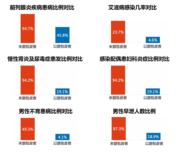 女人的满足,不取决男人做了什么,而在于做了多久!如果男人先射精,就没能力为女人性高潮服务。早泄就OUT, 女人绝难容忍,更加看不起。据性学会研究调查显示,包皮过长、阴茎头、冠状沟及包皮系带性敏感区域因不能裸露或较少裸露,会对性刺激更敏感,易致早泄。且患性病几率增加10倍以上,包皮过长还是阴茎癌的重要致病原因! 包皮过长到底该怎么办? 包皮过长危害大,包皮环切术就应时而生。早在12世纪,西班牙著名犹太医师摩西.麦蒙奈德斯(Moses Maimonides)为约束个人性欲而提出包皮环切术。在20世纪初,它作为改善卫生的措施在普及,到20世纪70年代时,95%男性都会在出生时被切除包皮。不得不说人的勇猛跟切了包皮有关! 在床上勇猛得让人嫉妒的人,他们都“切”了一个多世纪了,你还在等什么? 不剥包皮OK吗? 从预防性角度——包皮切除的必要性 包皮切除后,阴茎头受到较厚角蛋白的保护,有助于减少HIV-1等各类病毒感染机会;早期行包皮环切术,阴茎癌的发病率显著降低。(以色列,男婴出生10天即行包皮环切,阴茎癌的发病率仅为0.1/10万。) 从治疗性角度——包皮切除的重要性 增强性功能——包皮手术后,早泄患者的射精潜伏期明显延长,变得像人一样“耐战”。还可解除包茎引起的性交疼痛。杜绝因包皮过长造成的嵌顿、粘连及交叉感染导致的妇科炎症。作为一种治疗性手术,还可用于治疗多种病症,如病态性包茎、慢性包皮炎等。 ![]() 2012年江浙沪地区包皮男性并发症状临床统计数据