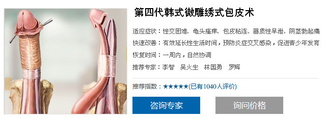 专业解读:众多包皮手术,哪种能让“男根”更“完美” 现在很多医院任采用传统手术,包括包皮袖套法环切术、器械、电离子刀、激光技术及创伤小整形。传统手术除了存在种种弊端如术后血肿、疤痕硬块,勃起性疼痛等问题外,更让男性觉得困扰的是,做完了以后,“男根”变丑了?有的甚至还影响了性功能! 1、系带过短过长 ——难看! 传统术式,术前多无个体差异性测量及评估,医生会惯性切除,易致包皮系带保留过短。包皮带系过短就会影响阴茎在阴道内抽动幅度、频率和力度,影响性快感体验;还会因包皮系带张力过大,引发撕裂或疼痛,冲淡甚至减少性乐趣,这时你可能,就需要重新手术。 2、切缘不整齐 ——难看! 传统包皮手术,不要求医生在术中运用切割平衡器,术后多数男性包皮切除不再同一水平面上,切缘不整齐。当然切缘不整齐,对你生活无太大影响,但是恢复后的生殖器官外观丑陋,你是否能忍受女朋友或者老婆看到“它”时候的眼神吗? 3、包皮左右不对称 ——难看! 传统包皮手术,手术过程仅单凭医生视觉测试,有的医院甚至用助理医生手术,术中难免出现切的时候手一抖,左边比右边多切了1MM,两边不对称的现象,极其影响美观。 4、缝合后留疤 ——难看! 传统手术一般采用金属线或者不可吸收线进行缝合,不但拆除费劲,患者痛苦外,还容易留“蜈蚣”疤。目前上最多用的欧式微雕绣式光离子包皮术,虽然采用连续缝合法和间断褥式缝合法,但是这种缝合方式张力大,出血多,容易导致包皮要与粘膜缝合在一起,造成了缝合时有可能会出现不均匀的现象, 也很容易留下难看的蚯蚓疤。 5、术后包皮外翻 ——难看! 传统方式剪掉腹侧皮肤一尖状皮瓣,使之与两侧皮肤切直线相连,与系带缝合后,局部因血液淋巴回流障碍,水肿往往经久不消,好像包皮系带部分一堆螯肉凸起,皱起还有一圈的小游泳圈外形很不美观,美容效果极差。 6、90度角垂直割 ——危险! 传统手术多采用90度角垂直入刀,内外板一起切割的方式,术中不容易避开毛细血管及感觉神经神经末梢纤维,易损伤到性功能,还会因为手术留死角而导致感染的发生。 有没有一种手术不但能高效解决男人的生理问题,同时还能让“它”更美观? ![]() 第四代欧式微雕绣式包皮术首次在泌尿专科手术领域引入了欧洲规范合理整形美学45度角“高效塑形”的理念,将3D现代化数字模拟整形技术与新型生殖手术充分结合。欧洲包皮整形创始人,领域生殖整形协会副主席hee sun Kim博士,经过50000例包皮过长患者临床验证,该技术创伤小微痛、自然美观、无需拆线,低感染等优势在医学界引起震动,且术后有效增强性功能的优势更是欧式包皮术的快速完美升级,使其成为新一代包皮过长治疗的“较好准”。 10分精细+10分雕塑=第四代欧式微雕绣式包皮术 第四代欧式微雕绣式包皮术与以往普通欧式包皮手术相比,在安满足男性基本的生理需求外,更重视男性心理需求。整个手术全程从人体美学角度出发 ,只为术后男根外观更自然、美观、大器。该手术具体以下4大特色: 数码3D 量体裁衣——分型定制 满足审美 采用欧洲GM公司生产的3D全数码生殖整形测量系统,三维立体扫描、高效测量每一位男士不同的阴茎体内的血管分布、神经分布情况、阴茎海绵体及阴茎皮肤的伸缩性能,高效定位最适宜包皮环切的黄金G点。 再由专业医生根据数据层层测算,综合评测男性生殖器官的个体特征,依据个体情况和美学需要分型定制,对应选择中部、根部等部位进行包皮整形。手术前更可通过电脑动态模拟后效果,以达到受术者期望值,确保不影响男性术后的勃起。 Aisys麻醉系统—— 全程无疼 风险为0 第四代欧式微雕绣式包皮术,采用领域Aisys麻醉执行体系,通过15大麻醉拟定细节,19大麻醉诱导细节,13大麻醉苏醒环节,21大麻醉维持细节将麻醉、监测、信息处理一体化。该体系为中国医学会、欧洲泌尿学会、NK男科中心,经过30年临床实践验证的切实有效,低风险。 通过定时定量麻醉高效控制麻醉时间、有效监测麻醉部位,术中无疼痛感,避免因疼痛导致的切割失误,将麻醉意外风险降低为0。麻醉维持作用1~2小时后,均被吸收由肝脏分解破坏,阴茎局部不残留麻药,各种感觉和神经反射功能均恢复正常。